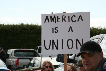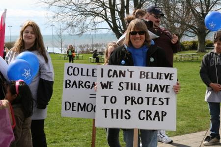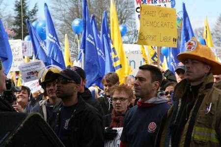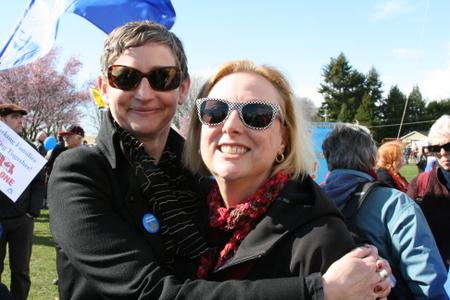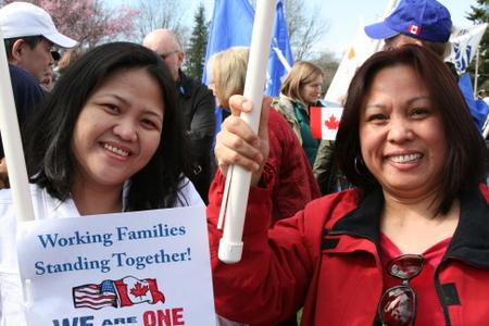 It was a great day of solidarity and sunshine at the Peace Arch border crossing on April 2. Union members and their families and supporters gathered to show support for public sector workers in Wisconsin and other states where collective bargaining rights are under attack.